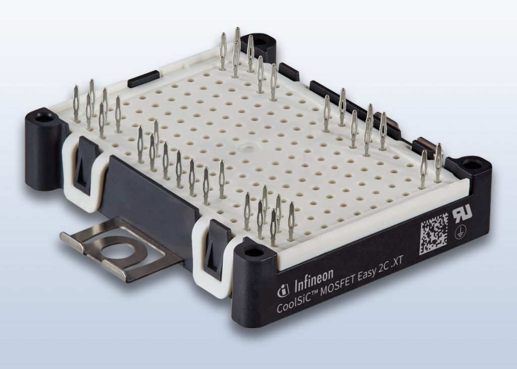 The CoolSiC™ MOSFET structure in the module, which has low on-resistance of 16.8mΩ at 175°C, minimizes conduction losses. Switching losses in high-frequency operation are low thanks to a control scheme which ensures operation in optimized switching conditions with the shortest possible dead times.