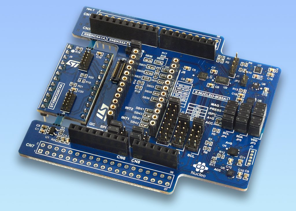 Detachable add-on modules provide additional connectors, and support distributed sensing layouts for either the STEVAL-MKGI07A microcontroller board or the main X-NUCLEO-IND5A1 board.