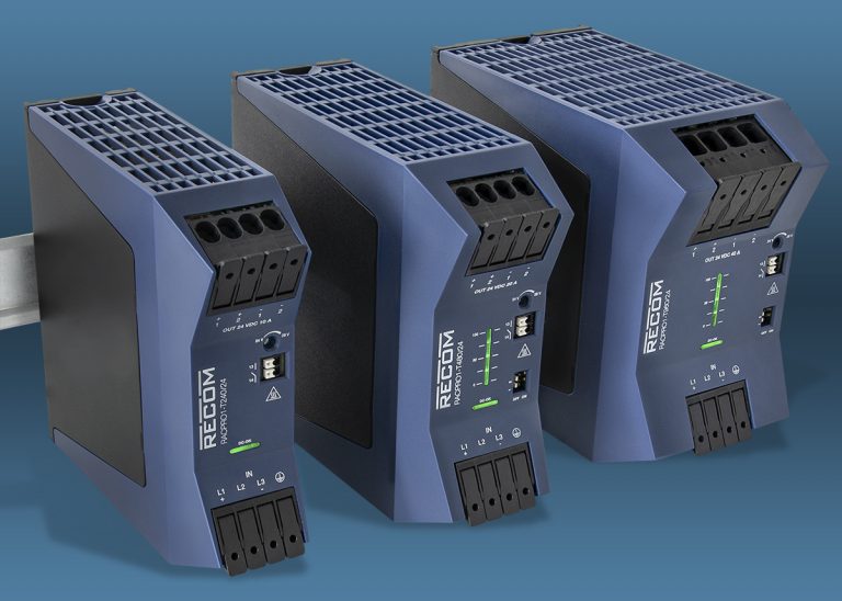 The new RACPRO1 series from RECOM, available with rated power outputs up to 960 W, offers excellent thermal characteristics, allowing the power supplies to be densely mounted on the DIN rail.